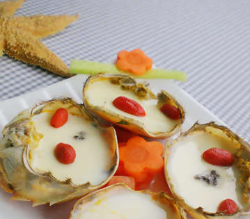 大閘蟹4個;雞蛋2個,約120克;溫開水240克;枸杞子10余粒;野山菇2朵;鹽一小勺。